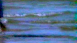 Vidéo, texte, pièces sonores et musiques de Dominique Petitgand, voix de Liza Maria Riveros, Paoulo Riveros, Bénédicte Petitgand et Dominique Ané, photographies de Madeleine Decaux au Yachting Club d’Arromanches (Route Panoramique, 2017), photogramme issu d’une vidéo privée de Jean‑Pierre Auvy (Arromanches, années 80).